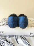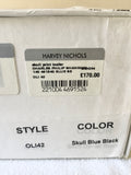 BRAND NEW IN BOX CHARLES PHILIP BLUE & BLACK SKULL PRINT SLIP ON SATIN LOAFERS