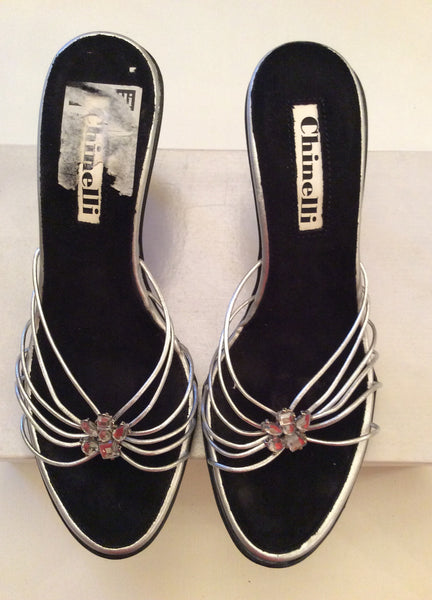 BRAND NEW IN BOX CHINELLI SILVER STRAPPY HEELED MULES