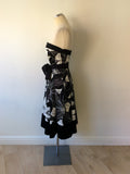 BRAND NEW COAST BLACK & WHITE FLORAL PRINT COTTON STRAPLESS DRESS SIZE 12