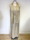BRAND NEW DEBUT PALE GOLD HAND EMBELLISHED EVENING DRESS & WRAP SIZE 8