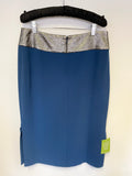 BRAND NEW DIANE VON FURSTENBERG ELVINA SILVER & LIQUID BLUE PENCIL SKIRT SIZE 12 UK 14