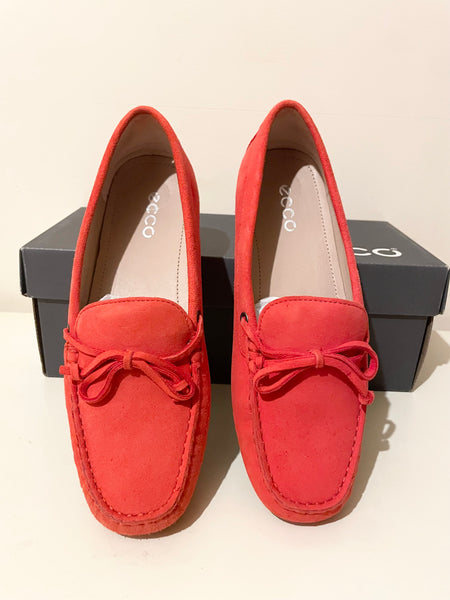 BRAND NEW ECCO DIVINE HIBISCUS ( CORAL) GOAT SUEDE FLAT MOCCASIN LOAFERS SIZE 5-5.5 /38