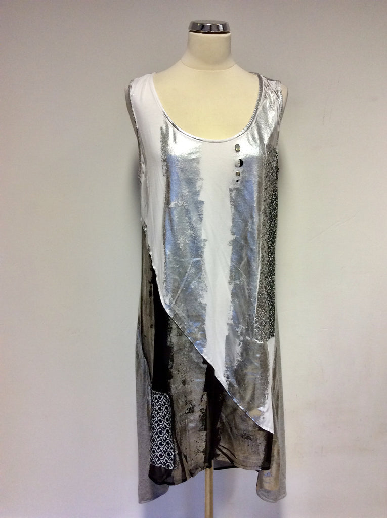BRAND NEW ELISA CAVELETTI BLACK,GREY, WHITE & SILVER TUNIC TOP/DRESS