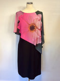 BRAND NEW FRANK LYMAN BLACK & PINK FLORAL FAUX CAPE DRESS SIZE 16