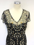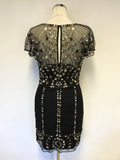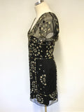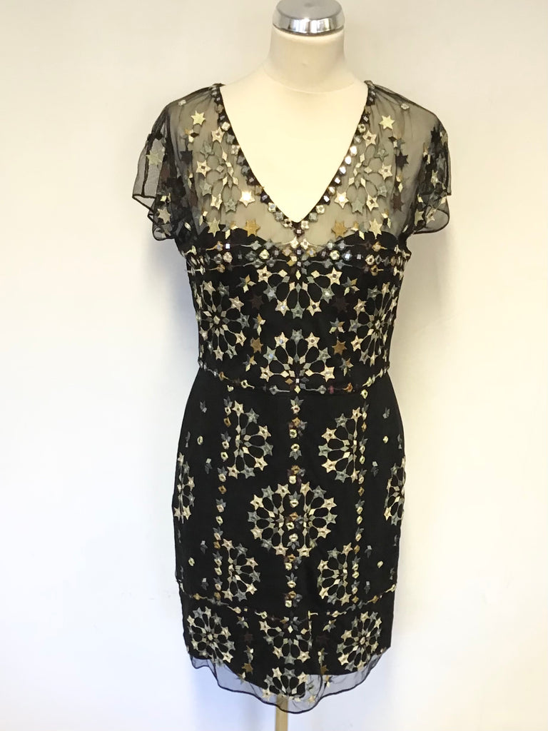 BRAND NEW FRENCH CONNECTION BLACK EMBROIDERED & MIRROR STAR DESIGN OCCASION DRESS SIZE 14