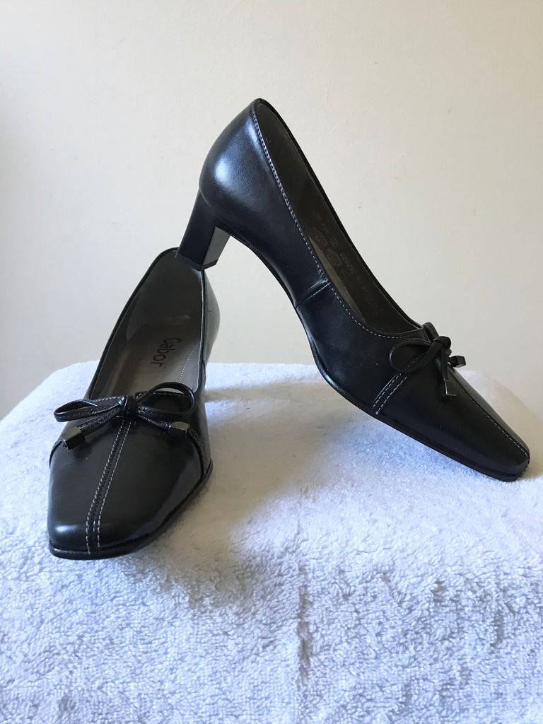 BRAND NEW GABOR BLACK BOW TRIM LEATHER HEELS SIZE 3/35.5