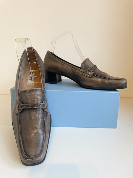 BRAND NEW GABOR LIGHT BROWN LEATHER BLOCK HEEL SHOES SIZE 6/39