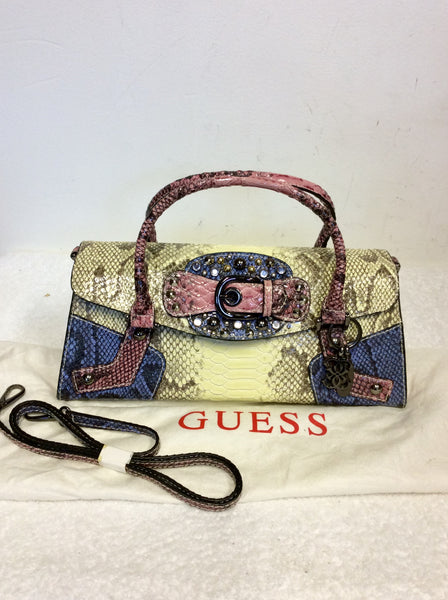 BRAND NEW GUESS LEMON,PINK & BLUE SNAKESKIN PRINT SHOULDER/HAND BAG