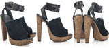 Brand New Herve Leger 'Frida 'Black Suede & Cork Heel Sandals