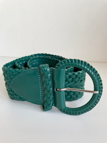 BRAND NEW WITHOUT TAGS HOBBS GREEN LEATHER PLAITED WEAVE BELT