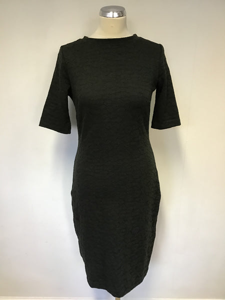BRAND NEW HOBBS KHAKI GREEN SHORT SLEEVE JACQUARD PENCIL DRESS SIZE 10