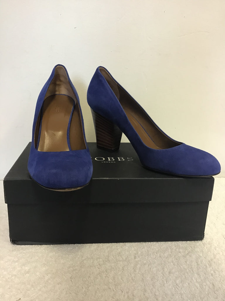 BRAND NEW HOBBS SION TRUE BLUE FINE SUEDE BLOCK HEEL COURT SHOES SIZE 7.5/41