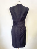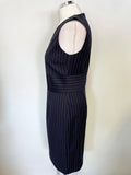BRAND NEW HUGO BOSS DOMETA NAVY BLUE PINSTRIPE WOOL SLEEVELESS PENCIL DRESS SIZE 8