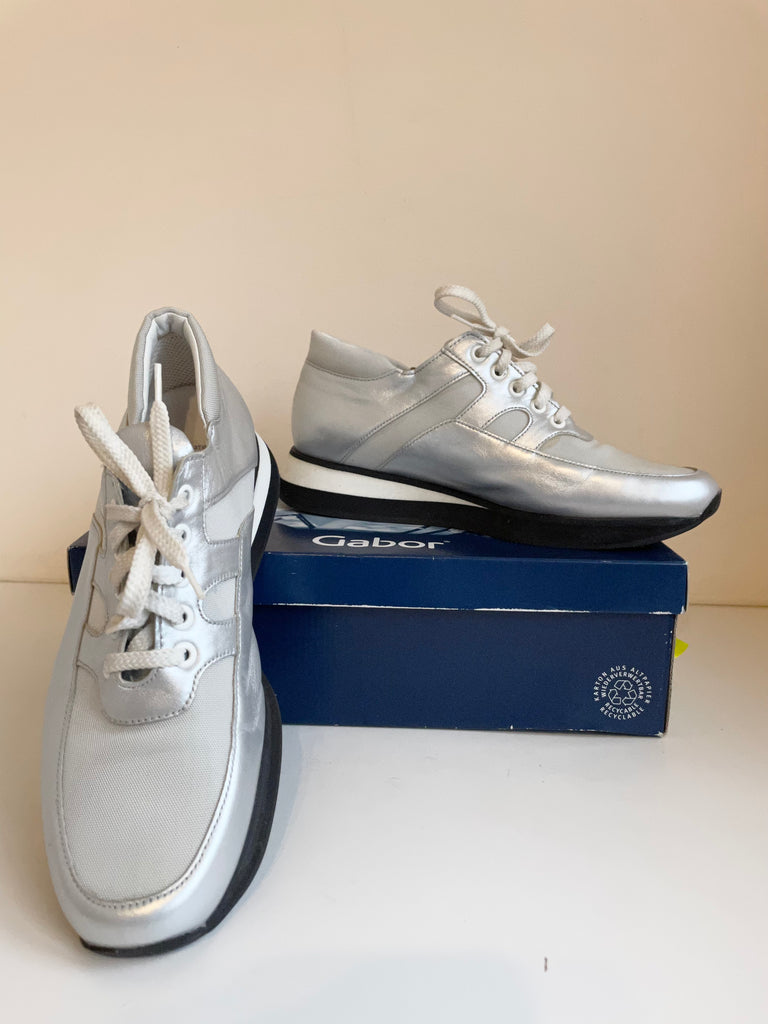 BRAND NEW IN BOX GABOR SPORT SILVER LEATHER TRAINERS