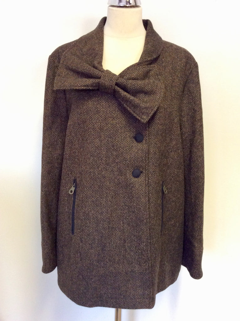 BRAND NEW JACK MURPHY BROWN TWEED SHETLAND WOOL BOW TRIM JACKET SIZE 18