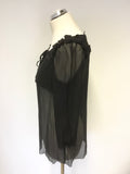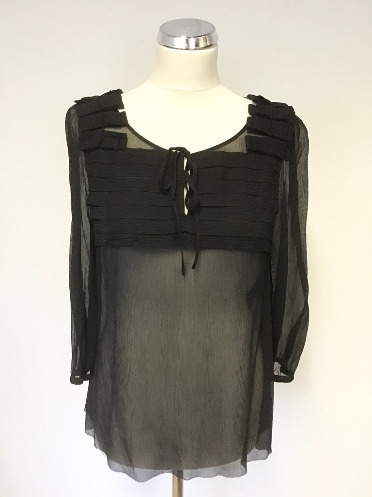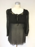 BRAND NEW JAEGER BLACK SILK PLEATED TRIM 3/4 SLEEVE TOP SIZE 10