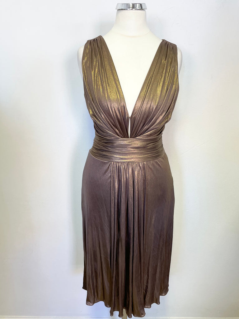 BRAND NEW JENNY DYER LONDON BRONZE METALLIC SLEEVELESS JERSEY COCKTAIL DRESS SIZE 6