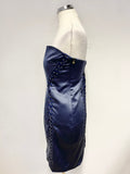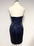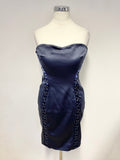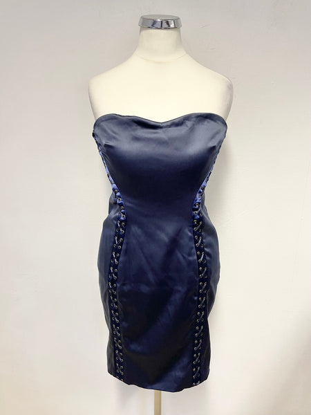 BRAND NEW JUST CAVALLI NAVY BLUE SATIN LACE UP DETAIL STRAPLESS COCKTAIL DRESS SIZE 44 UK 10