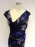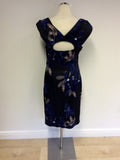 BRAND NEW KAREN MILLEN BLACK & BLUE FLORAL DRESS & MATCHING CLUTCH BAG SIZE 14