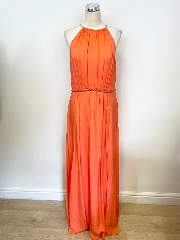 BRAND NEW KAREN MILLEN ORANGE CHAIN TRIM MAXI DRESS SIZE 14