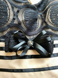 BLACK LACE TO TOP TO FRONT WITH BOW TRIM WITH JEWEL CENTRE