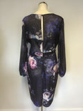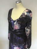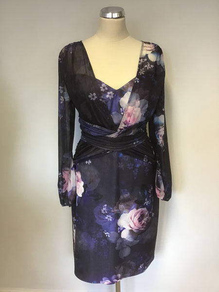 BRAND NEW LIPSY BLUE FLORAL PRINT LONG SLEEVE OCCASION DRESS SIZE L
