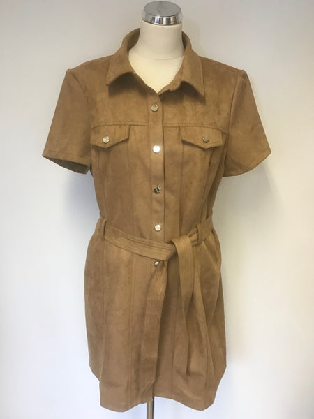 BRAND NEW LIPSY TAN FAUX SUEDE SHORT SLEEVE TIE BELT DRESS SIZE 16