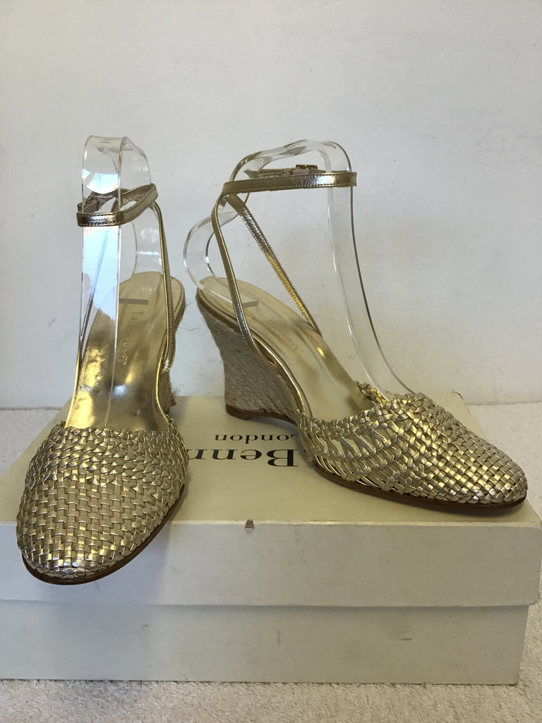 BRAND NEW LK BENNETT GOLD LEATHER ESPADRILLE WEDGE HEEL SANDALS SIZE 5/38