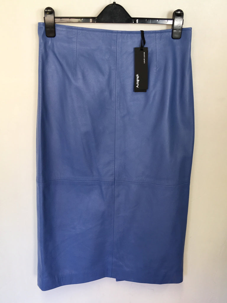 BRAND NEW MARKS & SPENCER AUTOGRAPH CORNFOWER BLUE LEATHER PENCIL SKIRT SIZE 14