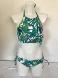 BRAND NEW WITH TAGS MARKS & SPENCER GREEN & WHITE PRINT BIKINI TOP & 2 PAIRS OF BOTTOMS
