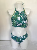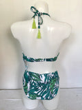 BRAND NEW MARKS & SPENCER GREEN & WHITE PRINT BIKINI TOP & 2 SETS OF BOTTOMS SIZE 14/16