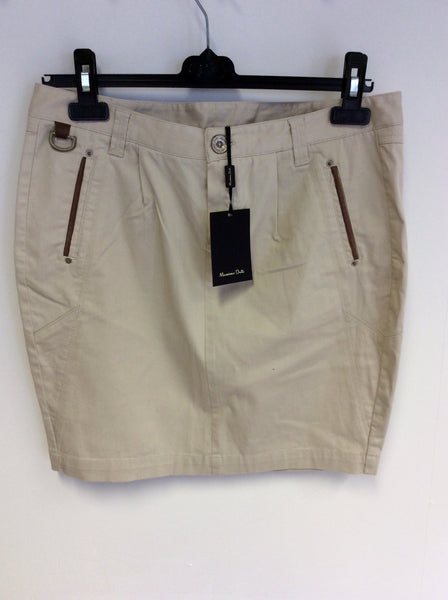 BRAND NEW MASSIMO DUTTI BEIGE & LEATHER TRIM SKIRT SIZE 12