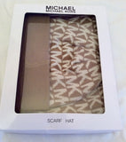 Brand New Michael Kors Beige Logo Print Hat & Scarf Set