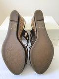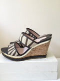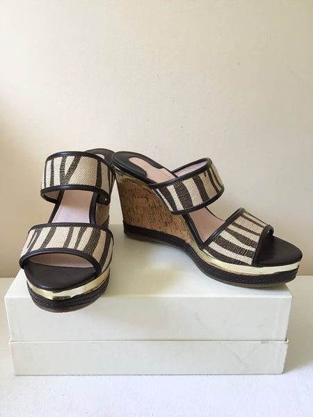 BRAND NEW MODA IN PELLE CREAM & BROWN GOLD TRIM WEDGE HEEL MULES SIZE 7/40