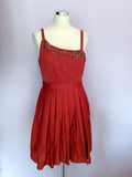 Brand New Monsoon Orange Beaded & Sequin Trim Cotton Dress Size 14