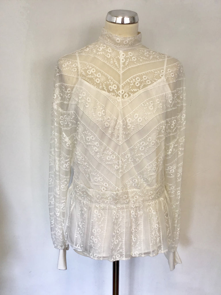 BRAND NEW MUVEIL IVORY SILK EMBROIDERED LONG SLEEVE BLOUSE SIZE 36 UK 8