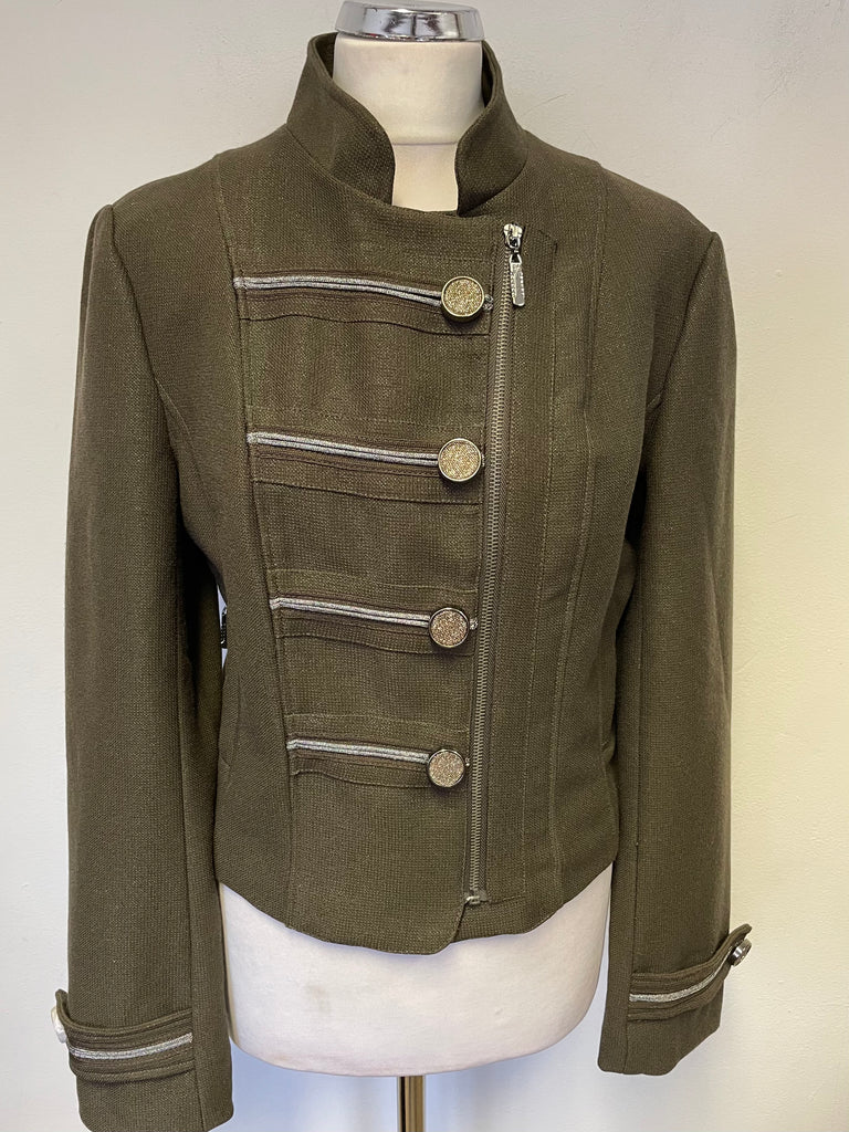 BRAND NEW MY COLLECTION BROWN ZIP FRONT BRAID & BUTTON TRIM JACKET SIZE XL