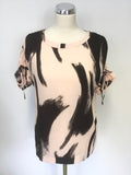 BRAND NEW NICOLE FARHI PINK & BLACK PRINT DRAW STRING TIE SHORT SLEEVE TOP SIZE S /10