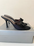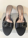 BRAND NEW NINE WEST BLACK TIE SATIN JEWEL TRIM HEELED MULES SIZE 4/37