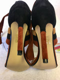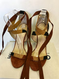BRAND NEW OFFICE BROWN & BLACK SUEDE PATCHWORK ANKLE TIE HEEL SANDALS SIZE 5/38