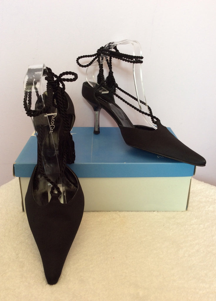 Brand New Paco Gil Black Satin Lace Up Leg Heels Size 7/40