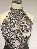 SILK PRINT TOP HALTERNECK TOP WITH 2 BUTTON FASTEN TO BACK OF NECK