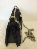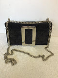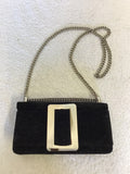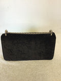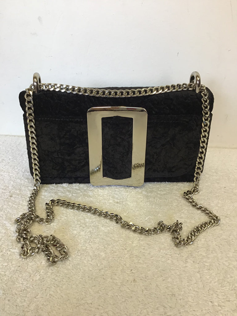 BRAND NEW PEACH BLACK CRUSHED VELVET SILVER BUCKLE TRIM CHAIN STRAP SHOULDER BAG