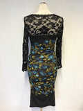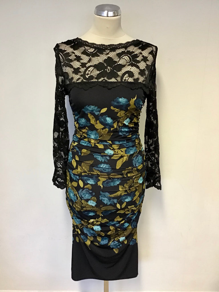 BRAND NEW PHASE EIGHT BLACK LACE TOP FLORAL PRINT STRETCH BODYCON DRESS SIZE 8