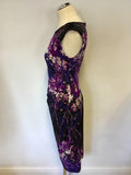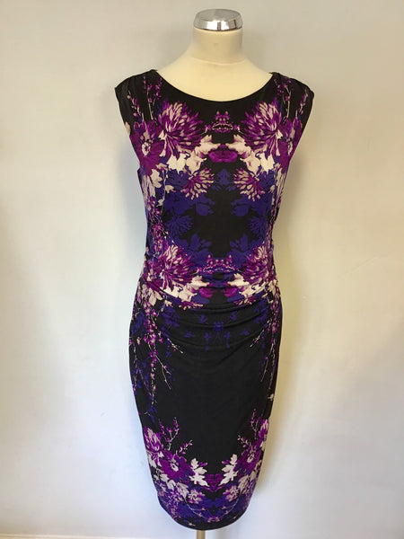 BRAND NEW PHASE EIGHT BLACK,PURPLE & PINK FLORAL PRINT STRETCH KNEE LENGTH DRESS SIZE 12