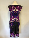 BRAND NEW PHASE EIGHT BLACK, PINK & PURPLE FLORAL PRINT STRETCH DRESS