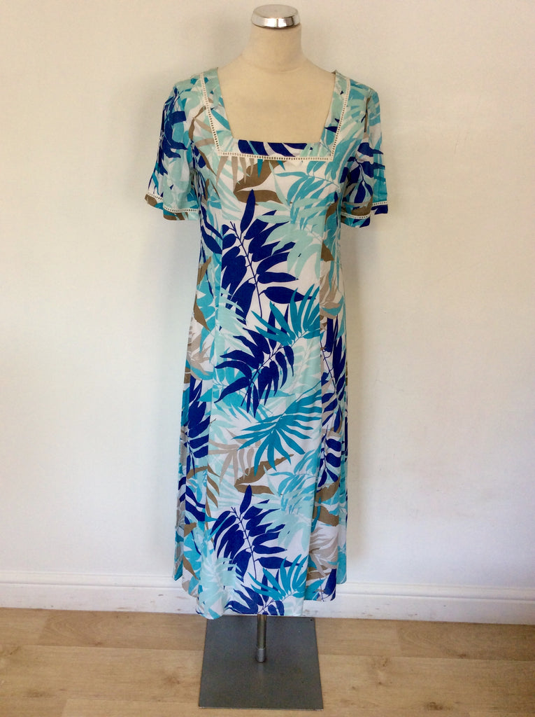BRAND NEW POMODORO AQUA PALM PRINT COTTON DRESS SIZE 10