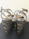 BRAND NEW PRADA PEWTER LEATHER & RAFFA ANKLE STRAP WEDGE HEEL SANDALS
