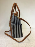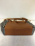 BRAND NEW RARE HENRI BENDEL MISS BENDEL TAN LEATHER & BROWN STRIPE BABY / TRAVEL BAG