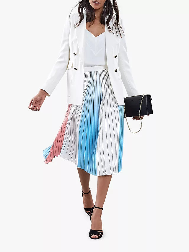 BRAND NEW REISS NINA PASTEL STRIPE KNIFE PLEATED MIDI SKIRT SIZE 10